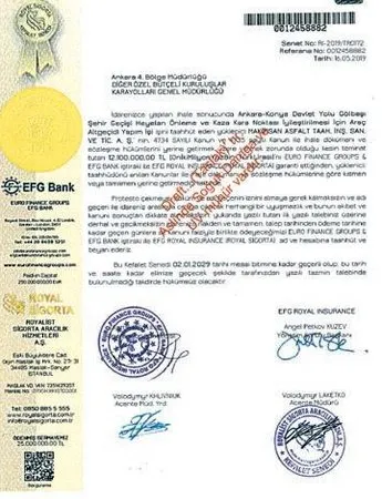 Royalist Sigorta Aracılık Hizmetleri A.Ş., EFG Royal Insurance ve Royal Sigorta da Royal&Sun Alliance Insurance şirketlerinin isimlerini taklit ederek sahte kefalet senedi hazırlıyor.